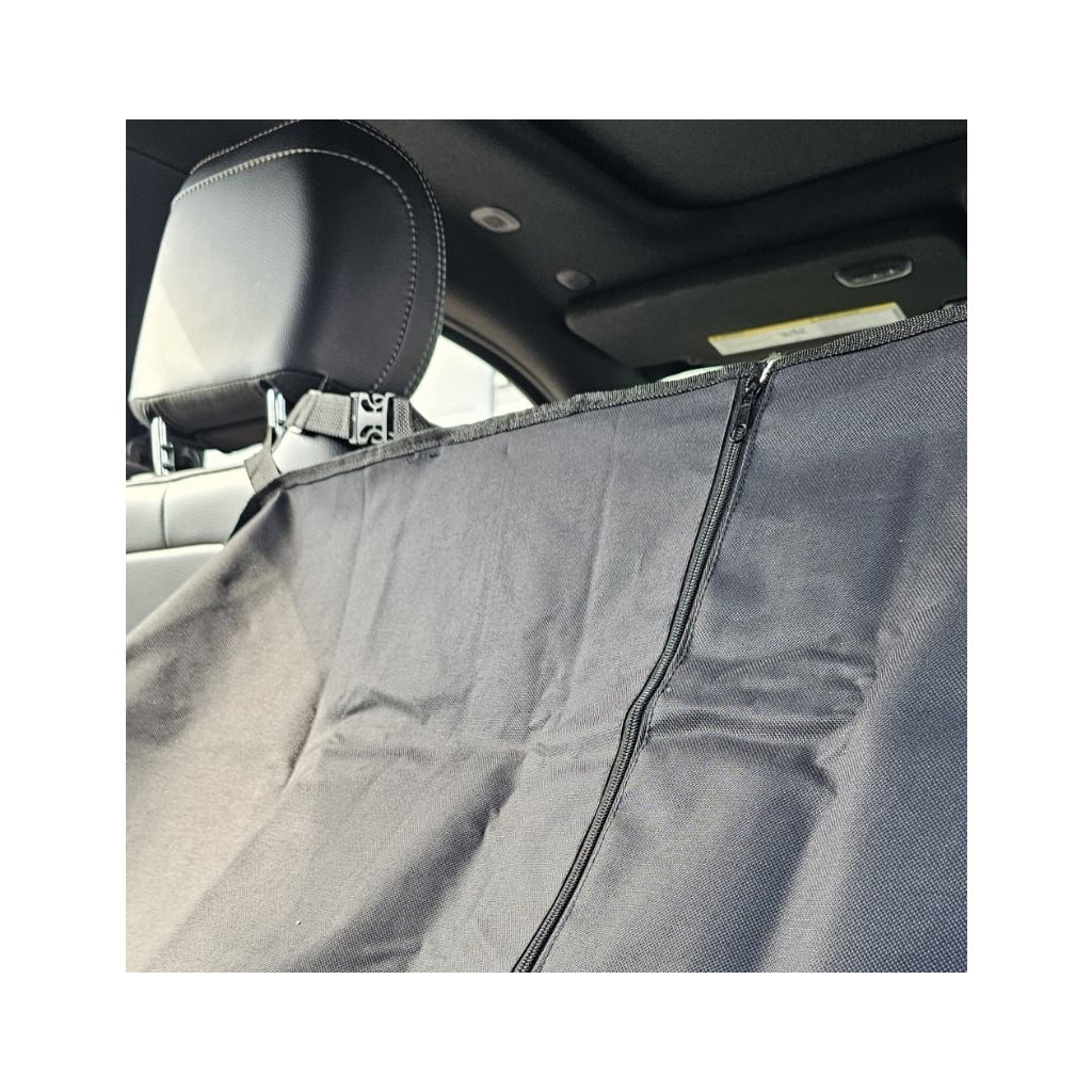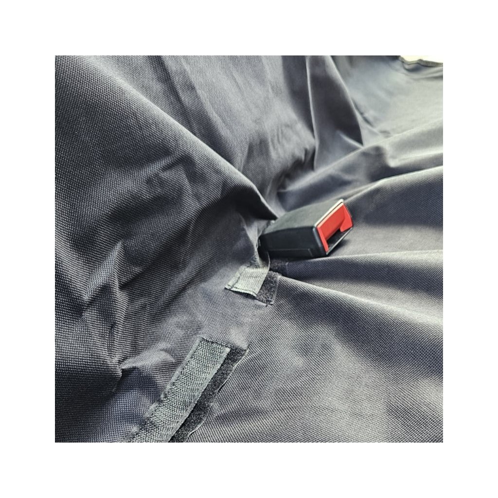 Jednoduché uchycení pomocí popruhů k opěrkám hlavy zajistí stabilní polohu deky i při pohybu zvířete. Kryje celou plochu zadních sedadel včetně prostoru mezi nimi, a poskytuje tak kompletní ochranu interiéru.