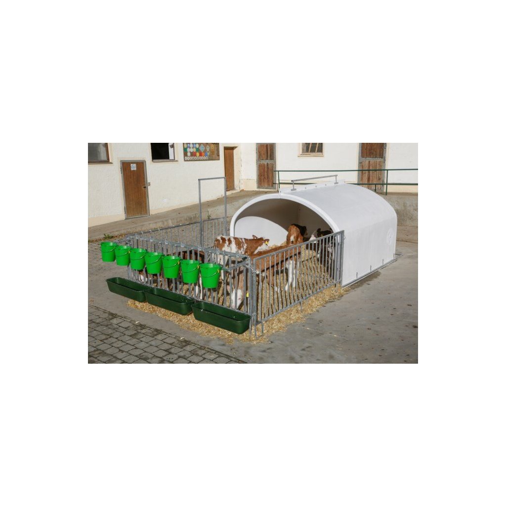 Velkokapacitní bouda pro telata, vyrobená ze sklolaminátového plastu poskytuje místo až pro 7 telat.