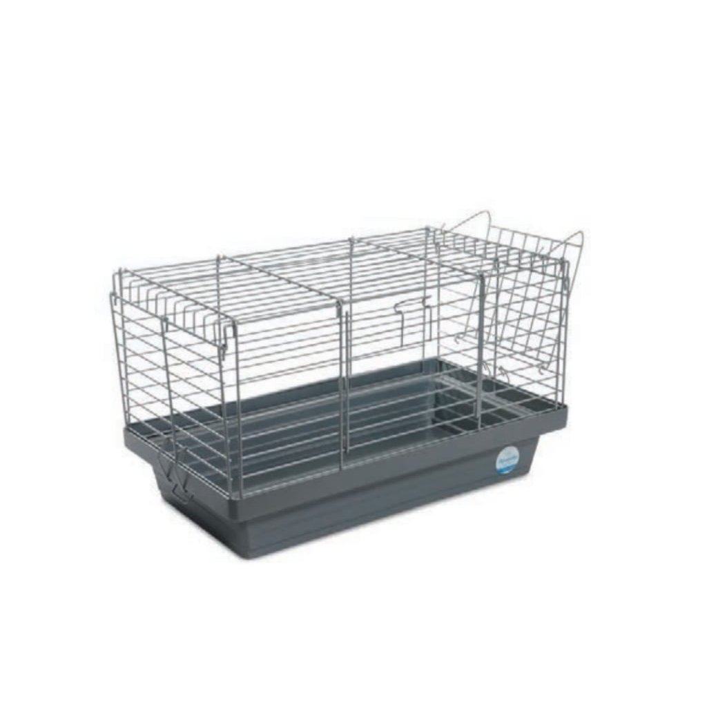 Klec je vybavena dvířky pro snadný přístup a praktickými jesličkami na seno, které zajistí králíčkovi pohodlný přístup k jeho oblíbené pochoutce. Kompaktní velikost je vhodná pro domácí chov a snadné umístění.