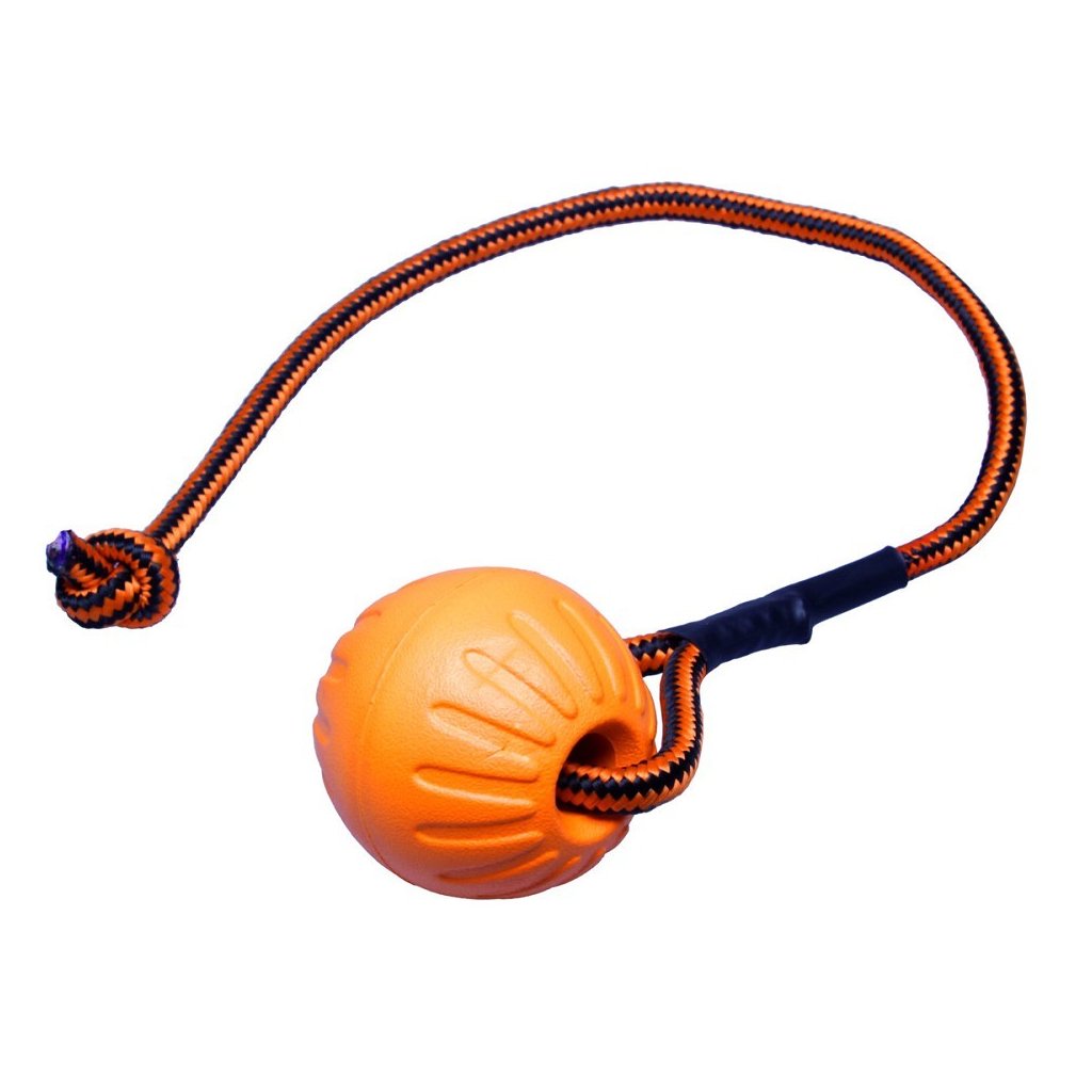 Interaktivní míček se šňůrkou je vyroben z unikátního, zdravotně nezávadného materiálu, který umožňuje Vašemu psovi lehce se zakousnout. Hračka podporuje rozvoj Vašeho psa, je vhodná pro házení a aportování, je plovoucí, a tudíž vhodná pro hru ve vodě. Tyto hračky jsou měkké, lehké, odolné v tahu. Zuby psovi proniknou do povrchu hračky, což ho velmi baví. I když na ní zůstávají stopy po zubech, není to na závadu a nijak to nesnižuje životnost hračky. Je určena pro aktivní práci a trénink se psem. Je vhodná pro střední a velká plemena. Lehce omyvatelná. Český výrobce B&F. Nenechávejte hračku psovi na kousání a ke hře o samotě. Rozměr míče: 7cmDélka provázku: 48cm Barva: oranžová