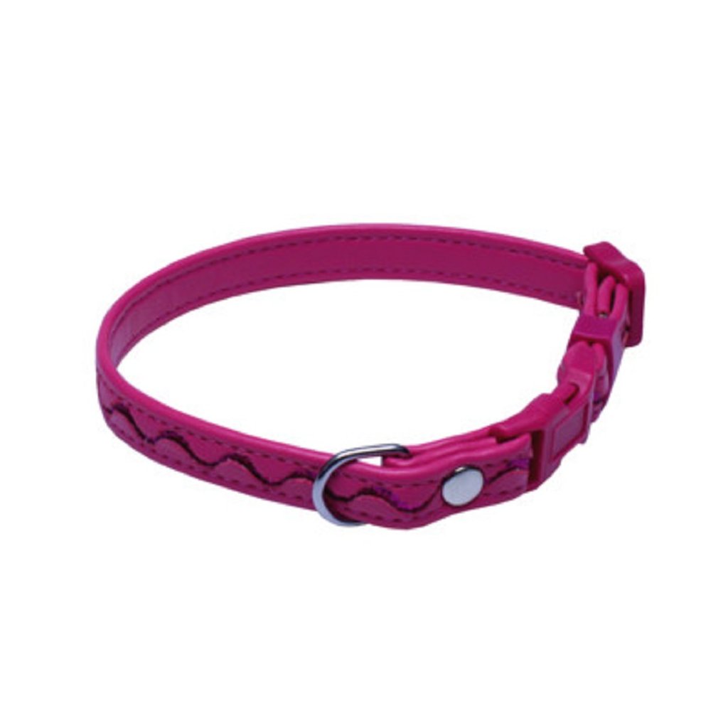 Obojek je vyroben z velmi příjemné a měkké koženky zdobené vlnkou se stříbrným třpytem. Součástí je plastová přezka, která umožňuje obojek upravovat dle obvodu krku. Je zde i svařované déčko pro připnutí vodítka. Obojek je vhodný pro malá a střední plemena. Rozměr: 1,2 x 20-35cmBarva: růžováDoplňkové parametry