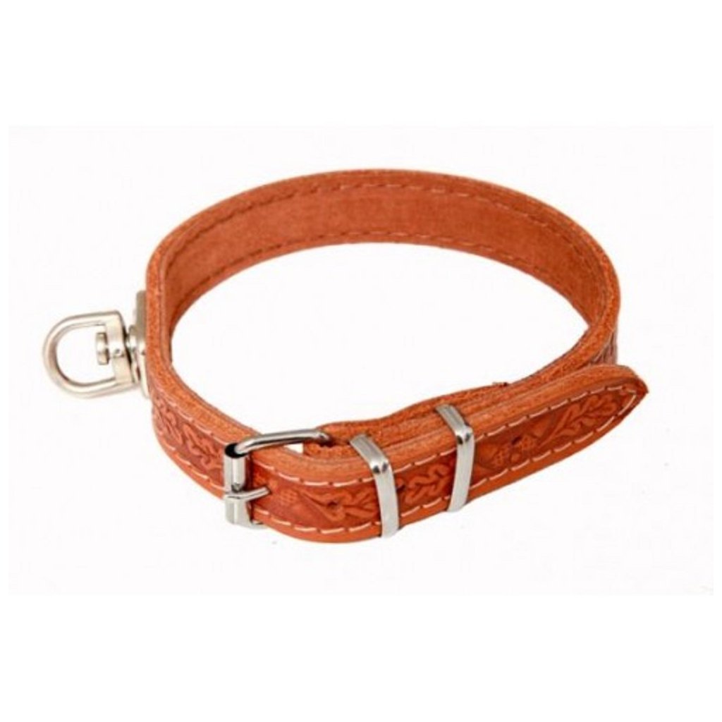 Barvářský obojek je vyroben z velmi měkké a příjemné hovězí kůže, podšitý jemným semišem. Obojek zdobí dubový list se žaludem. Pro funkci je vybaven otočným obrtlíkem pro připnutí stopovací šňůry a nebo vodítka. Je vhodný pro lovecká plemena.Rozměr: šířka 3,5cm, délka 55cmBarva: koňak