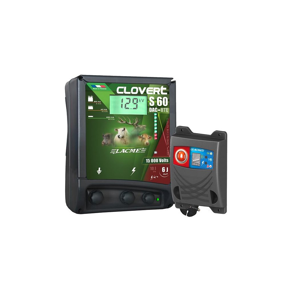 Výkonný digitální síťový zdroj CLOVERT S60-DAC s kontrolním alarmem, který akusticky i opticky signalizuje závadu na ohradě (malé napětí).