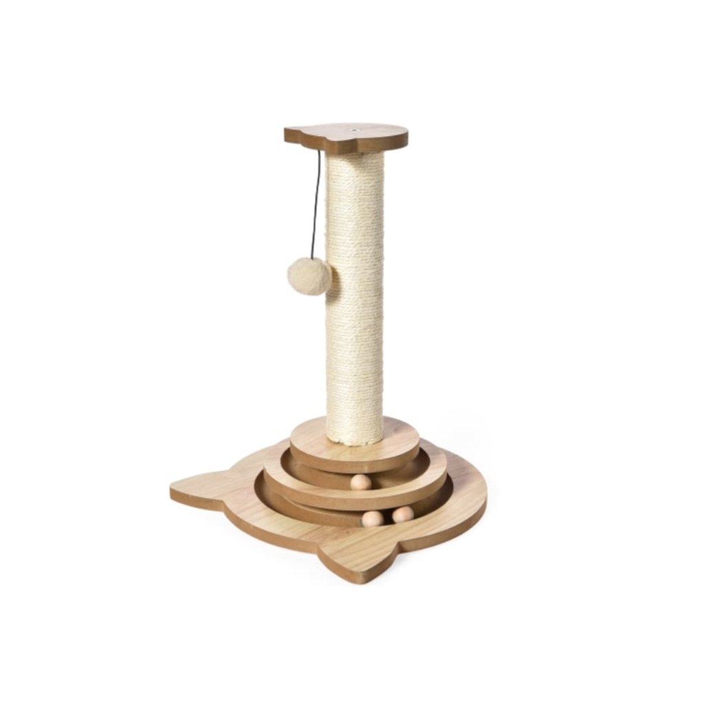 Sloupové sisalové škrábadlo se závěsnou hračkou společně s interaktivní hračkou v podobě hlavolamu s míčkem pro dlouhé hodiny zábavy vaší kočky.
