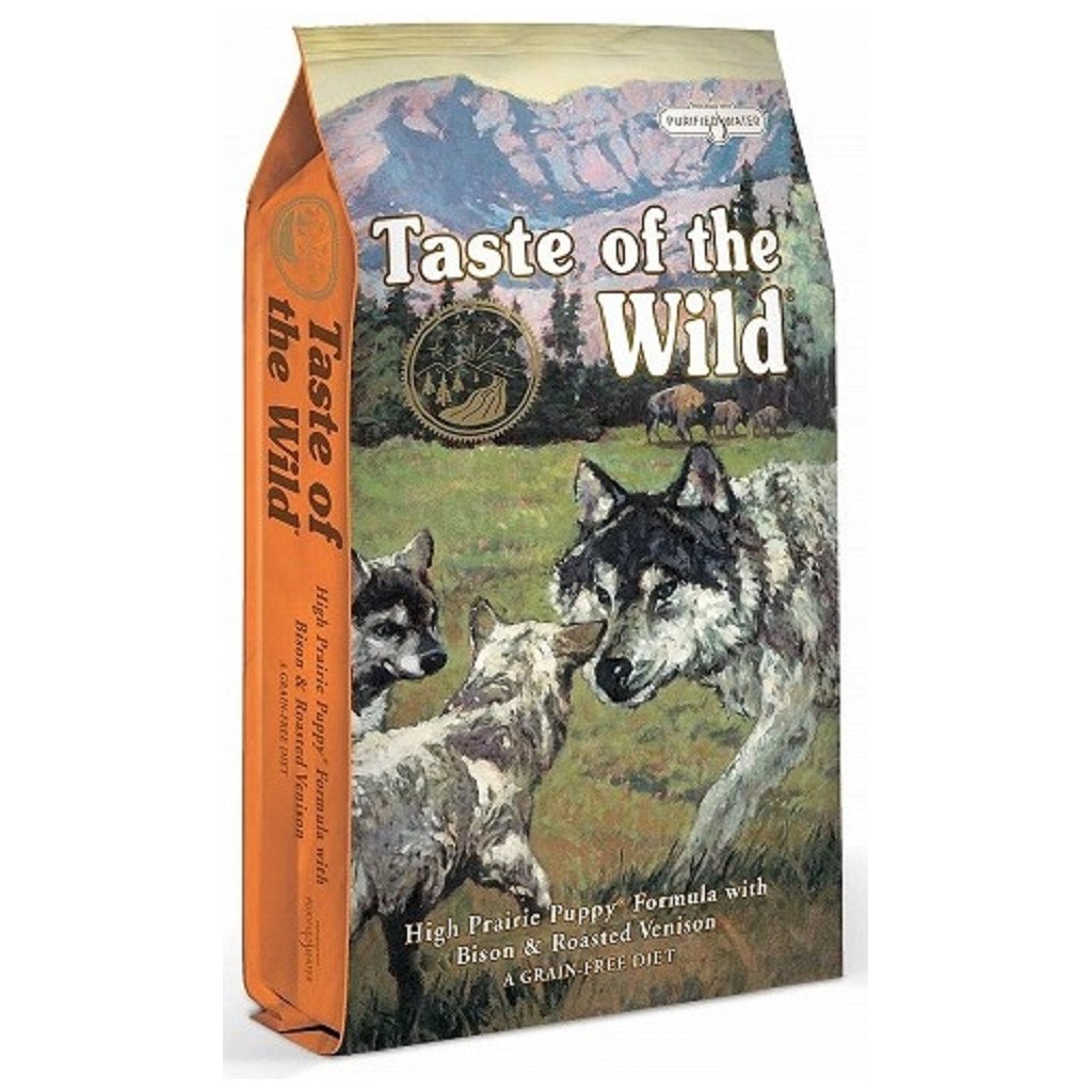 Kompletní krmivo pro štěňata z bizoního masa a pečené zvěřiny je exkluzivní kombinací vůně a chutí, kterou váš pes pozná pouze s granulemi Taste of the Wild. Taste of the Wild propočítal vhodné dávkování tak, aby regulovalo příjem kalorií do organismu psa a bylo vhodné, jak pro malá, střední i velká plemena.Složení: bizon (bizoní maso), jehněčí moučka (dehydrované jehněčí maso), batáty, vaječné výrobky sušené, protein z hrachu, hrách, brambory, řepkový olej, vedlejší výrobky z rajčat, pečená zvěřina (maso ze zvěřiny), hovězí maso, lněné semínko, bramborová vláknina, přírodní aroma (kuřecí játra a srdce), rybí moučka (z mořských ryb), lososový olej (zdroj DHA), chlorid sodný 0,4%, sušené kořínky čekanky, extrakt z juky, rajčata, borůvky, maliny, probiotika: sušený produkt fermentace enerococcus faecium, lactobacillus acidophilus, lactobacillus casei, lactobacillus plantarum, trichoderma longibrachiatum.