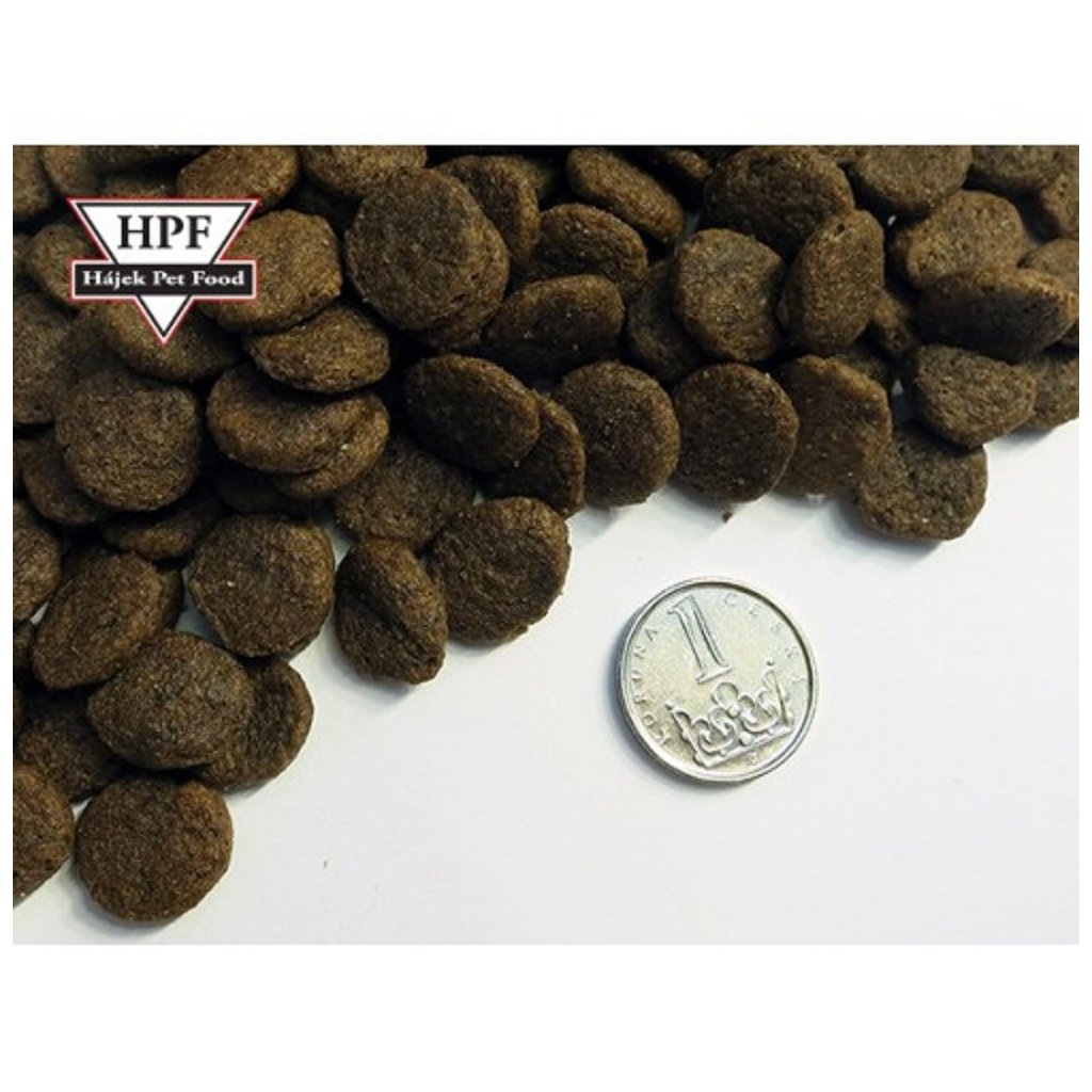 Analytické složky: hrubý protein 25%, hrubé oleje a tuky 15%, hrubý popel 8,5%, hrubá vláknina 3%, vlhkost 10%, vápník 1,9%, fosfor 1,1%, omega 6 mastné kyseliny 2,4%, omega 3 mastné kyseliny 0,3%. Doplňkové látky: vitamín A 11,500 IU/kg, vitamín D 800 IU/kg, vitamín E 175 IU/kg, chelátová forma železa hydrát 60 mg/kg, chelátová forma mědi hydrát 7 mg/kg, síran železnatý 60 mg/kg, síran měďnatý 7 mg/kg, jodid draselný 1,5 mg/kg, chelátová forma manganu 20 mg/kg, oxid manganatý 20 mg/kg. Energetická hodnota: 3 600 kcal/kg Doporučené dávkování 1,5-2,5 kg2,5-5 kg5-10 kg10-15 kg15-20 kg20-30 kg 35-50g 50-75g 75-150g 150-200g 200-235g 235-300g 30-40 kg40-50 kg50-65 kg65-75 kg75-85 kg 300-375g 375-435g 435-500g 500-575g 575-650g